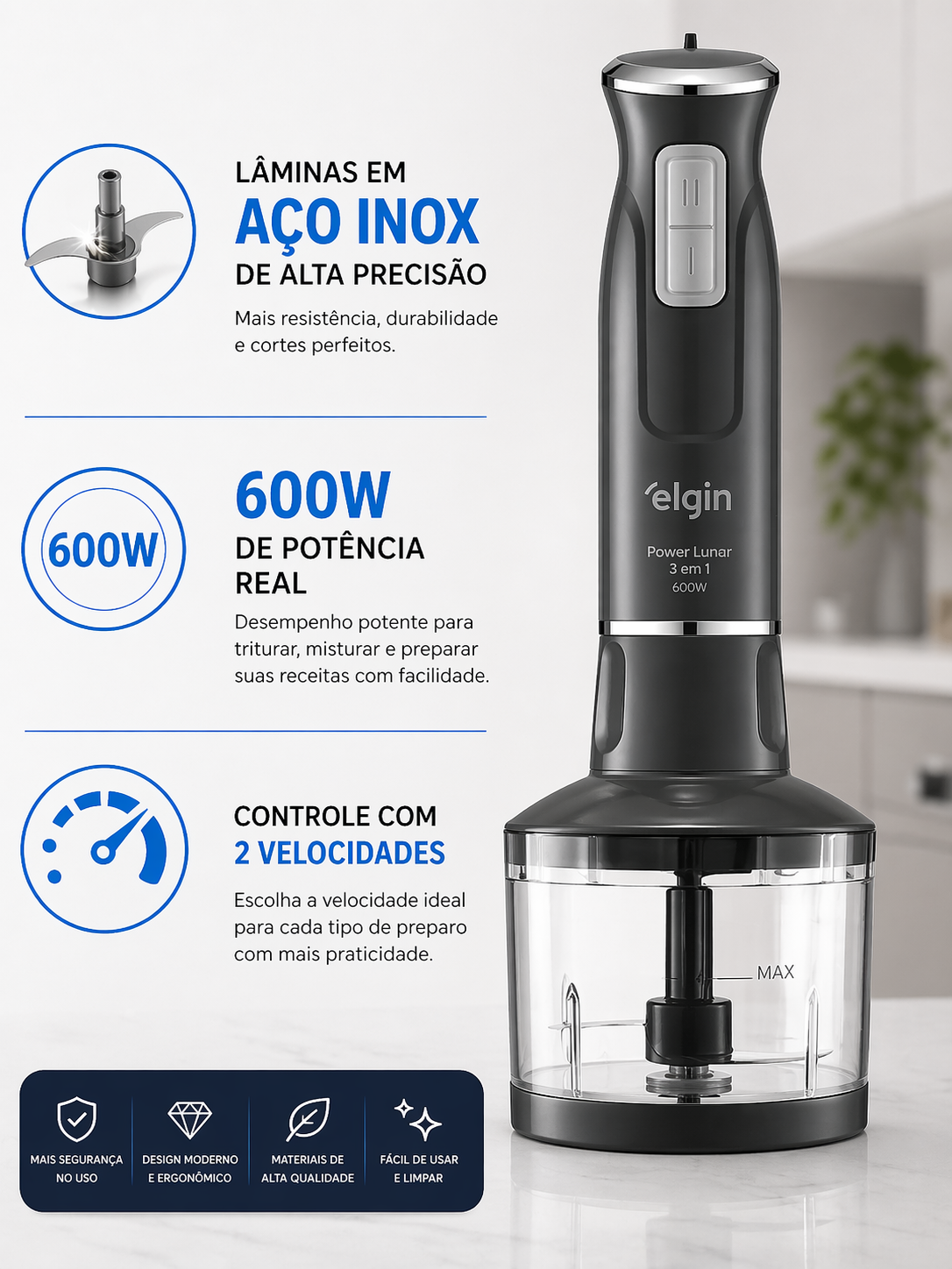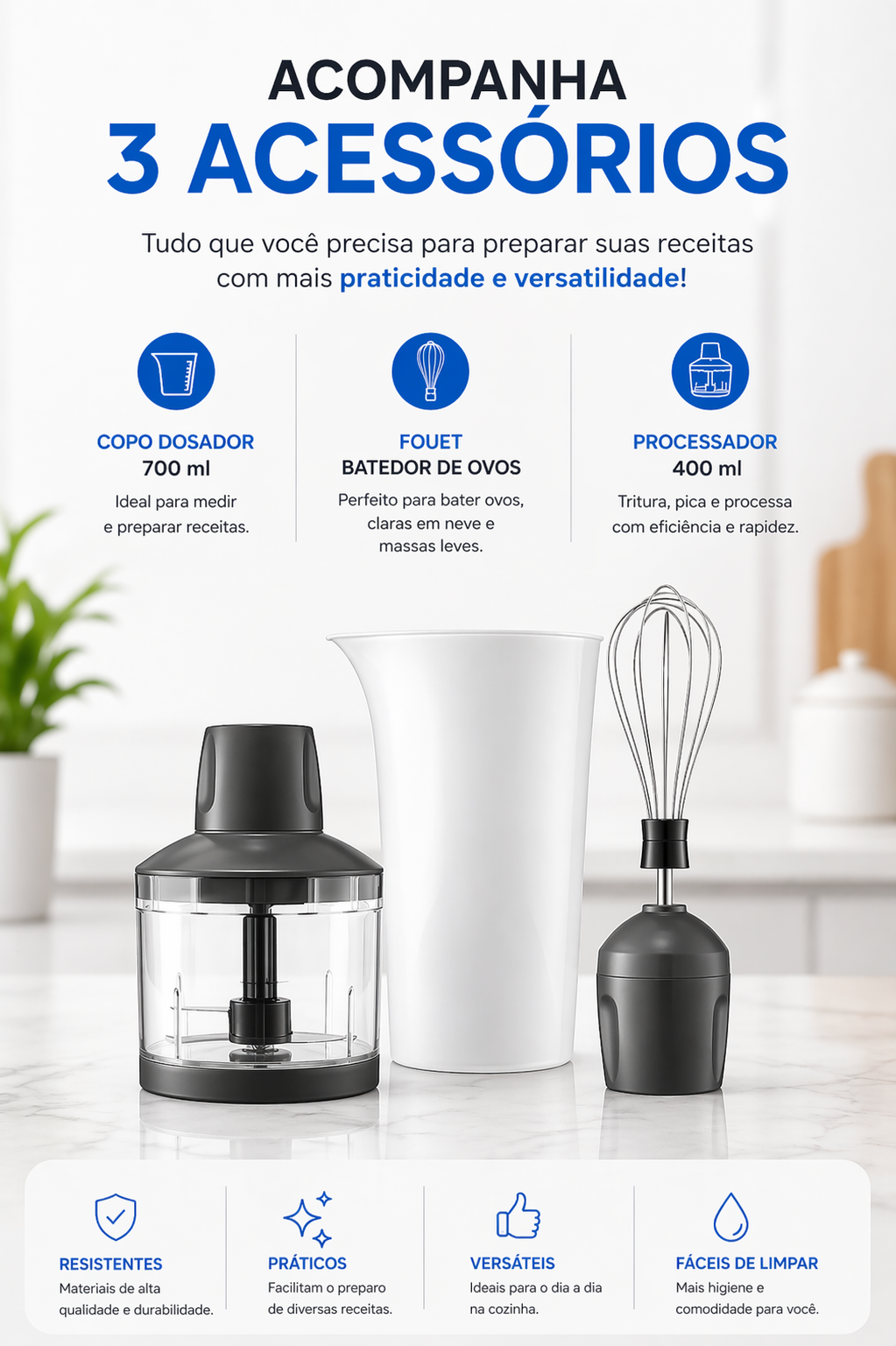 onsiga misturas suaves em segundos, ideal para molhos, bebidas e receitas rápidas